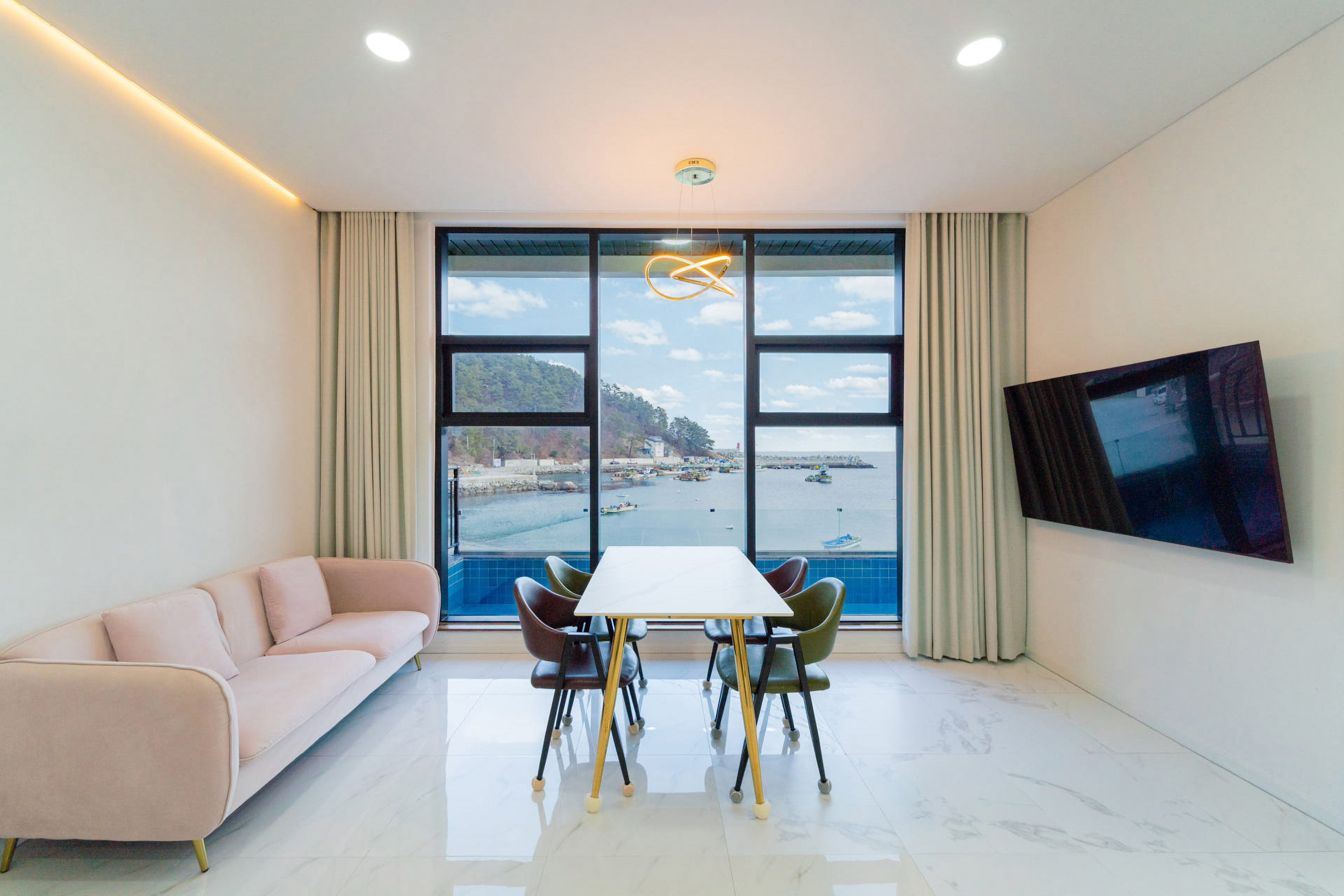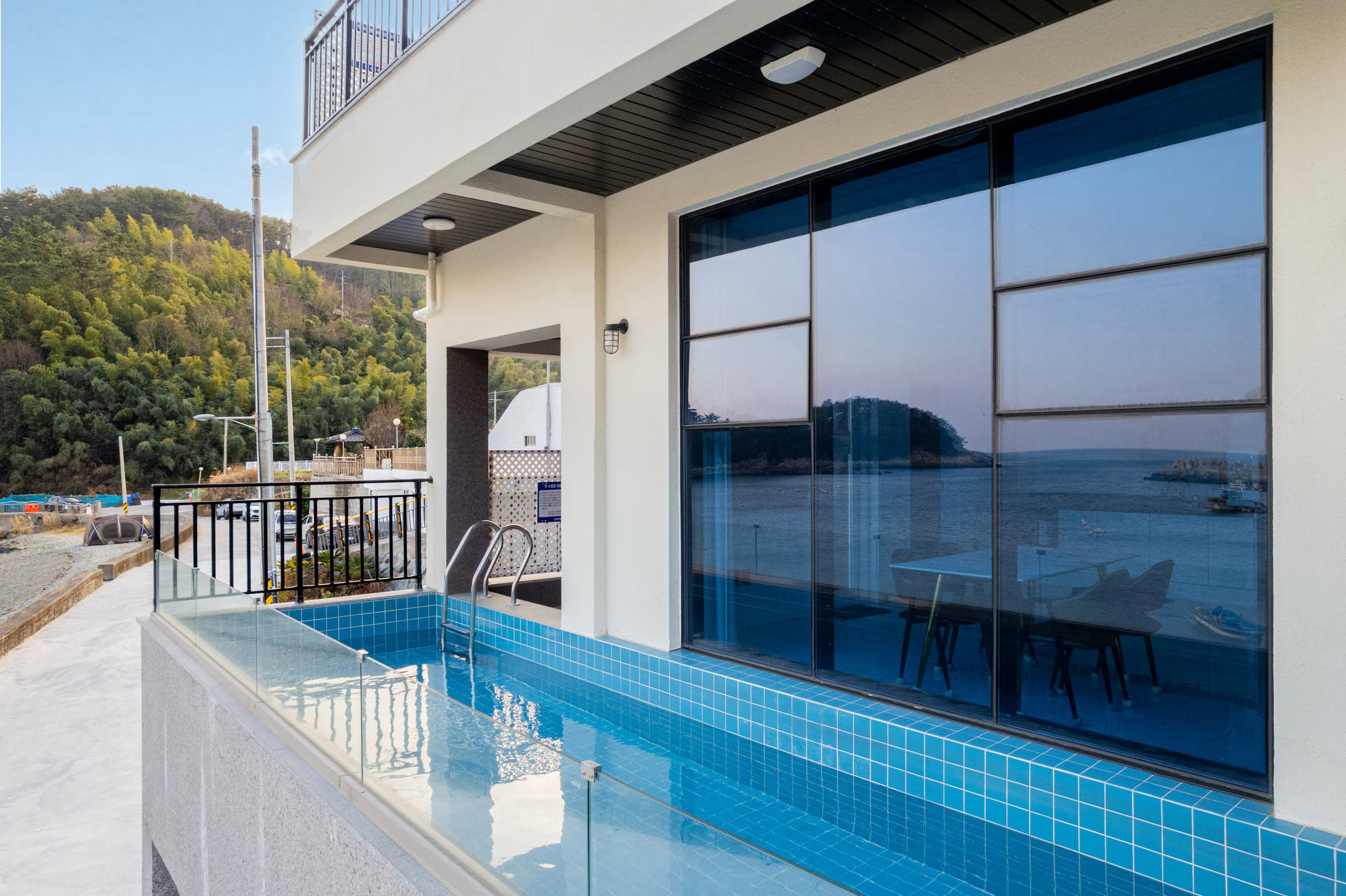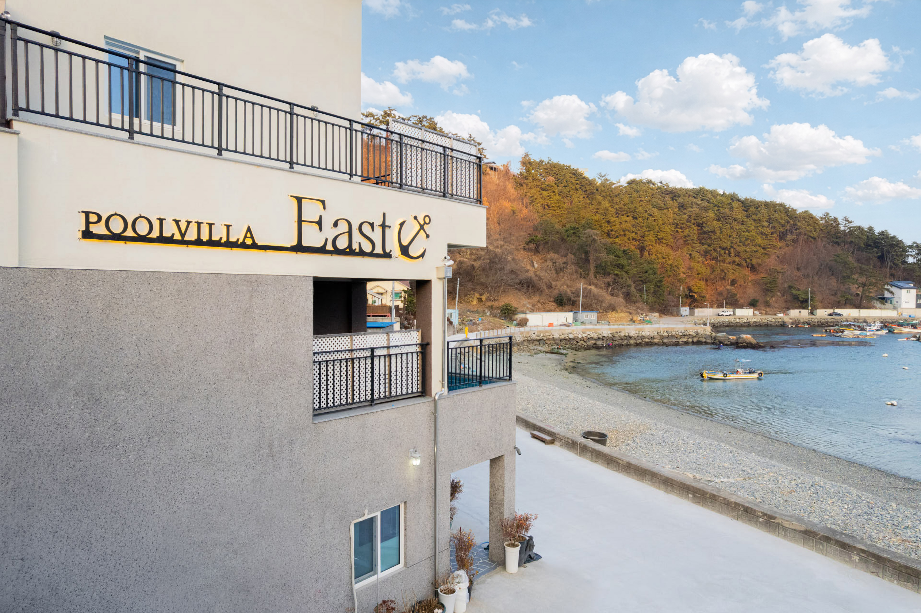 넓은 유리창 너머로 펼쳐지는 거제의 푸른 바다, 그리고 감각적인 인테리어로 꾸며진 이스트풀빌라는 단 한 팀만을 위한 프라이빗한 공간입니다.