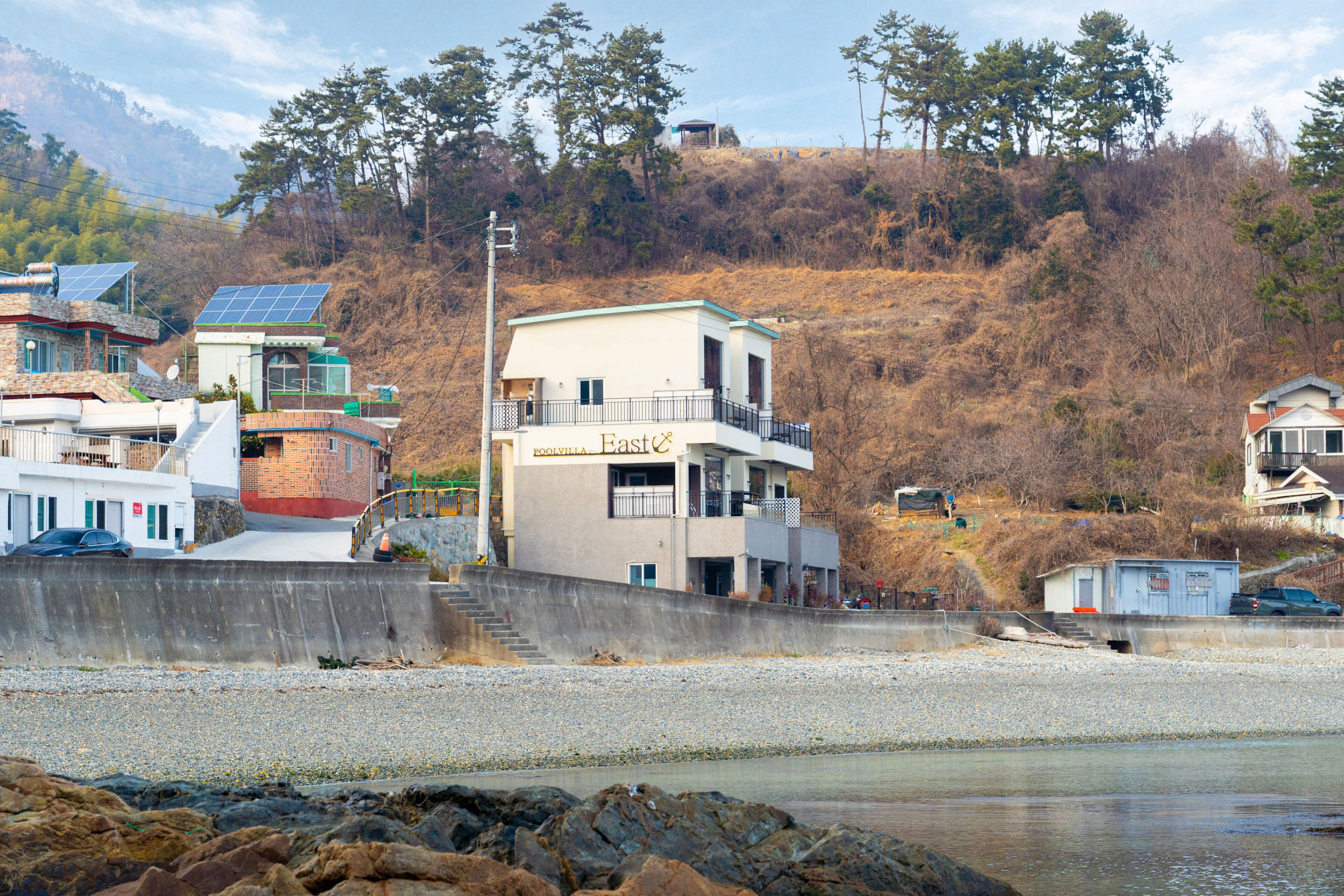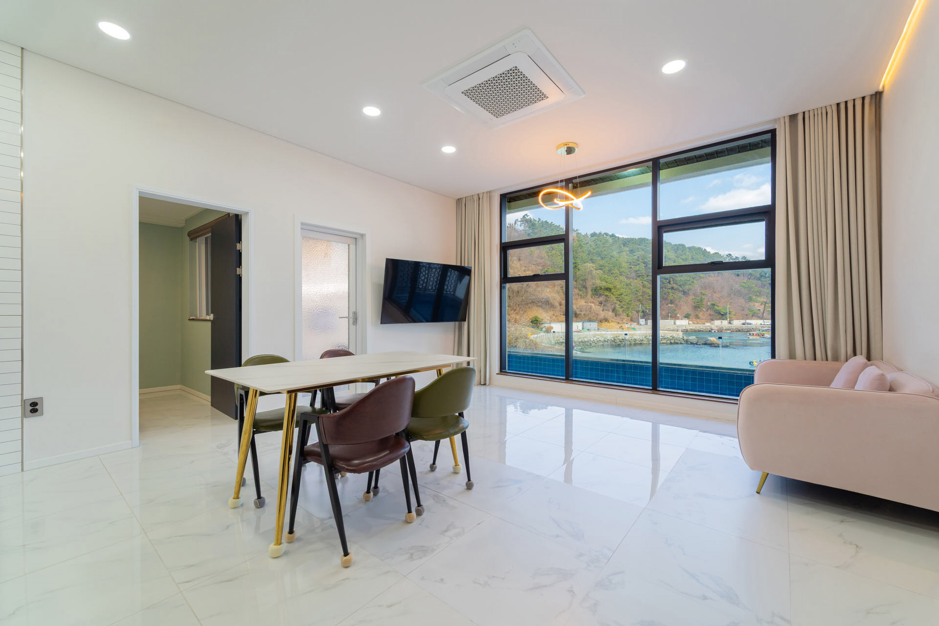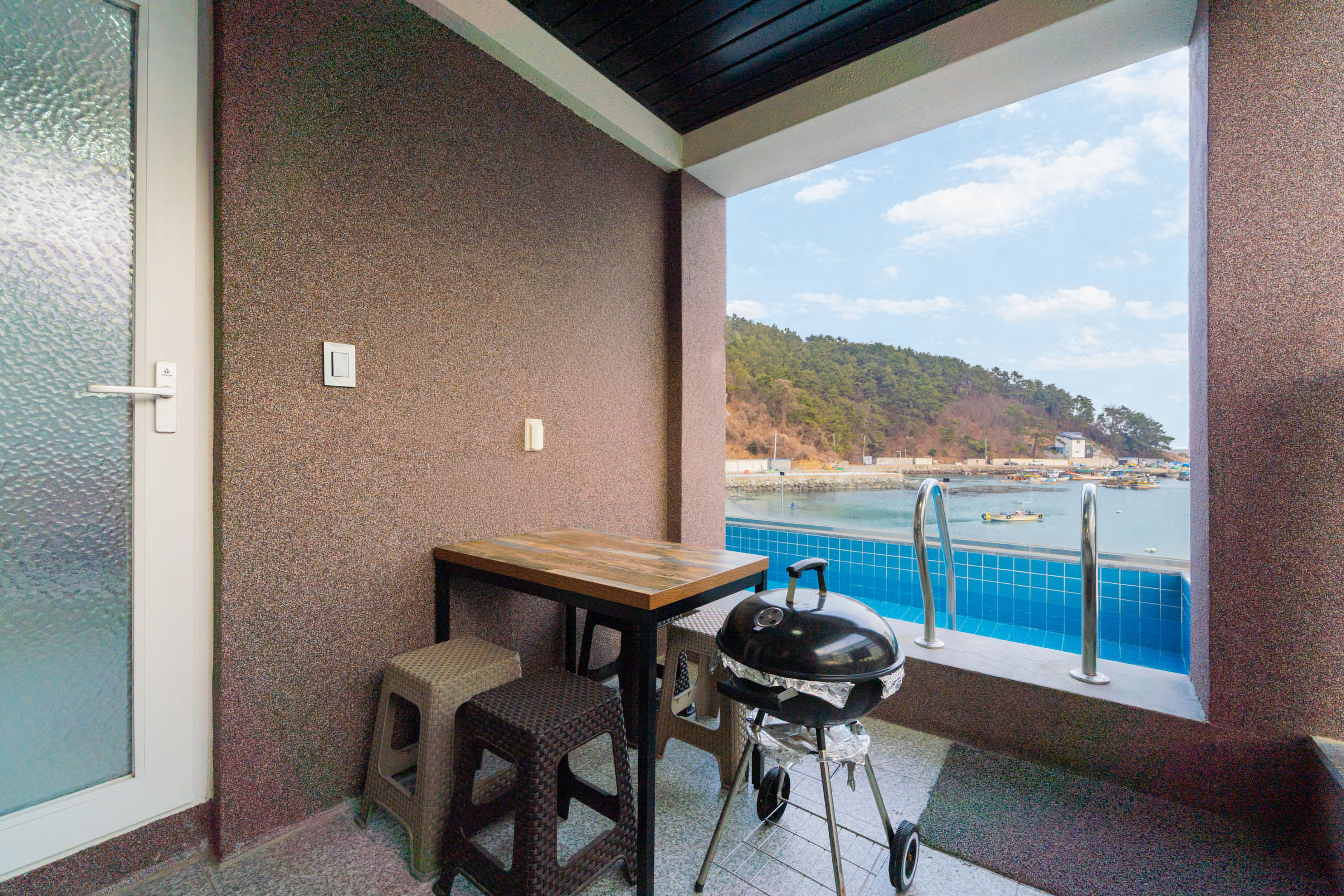 넓은 유리창 너머로 펼쳐지는 거제의 푸른 바다, 그리고 감각적인 인테리어로 꾸며진 이스트풀빌라는 단 한 팀만을 위한 프라이빗한 공간입니다.