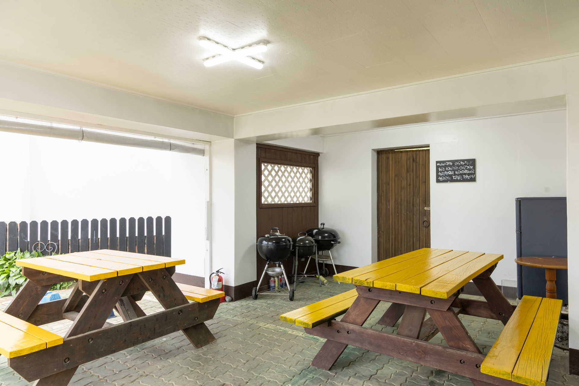 - 숯+그릴 대여 : 2인 기준 20,000원 (1인 추가 5,000원 / 숯 추가 5,000원) / 이용시간 : 17:00~20:00 / 사전 예약 필수 / 20:00 신청 마감 / 우천시 불가 / 개별 바비큐 가능 / 현장 결제