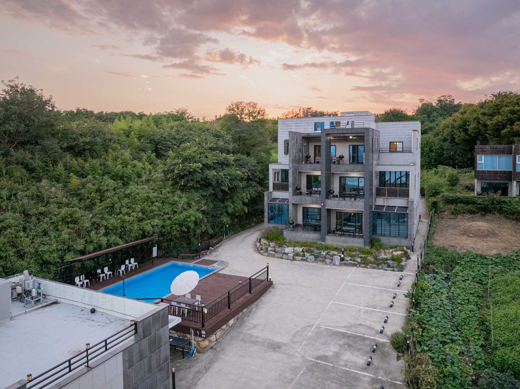 모던하고 세련된 인테리어, 개별 수영장과 야외 제트스파, 전용 BBQ 공간이 완비되어 로맨틱한 여행과 가족 여행 모두에 최적화된 쉼을 선사합니다.