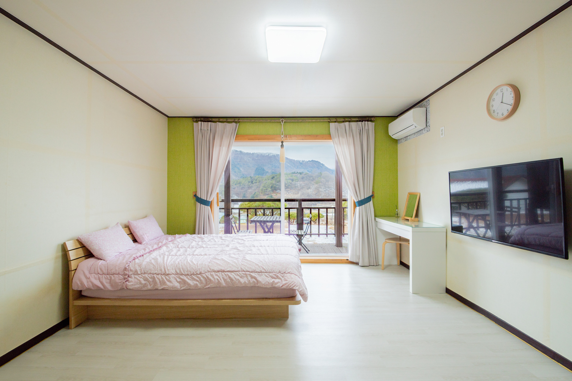 화천 산천어펜션은 전 객실에서 산과 숲을 조망할 수 있는 친환경 목조 건물로 지어진 자연 속 휴식처입니다.