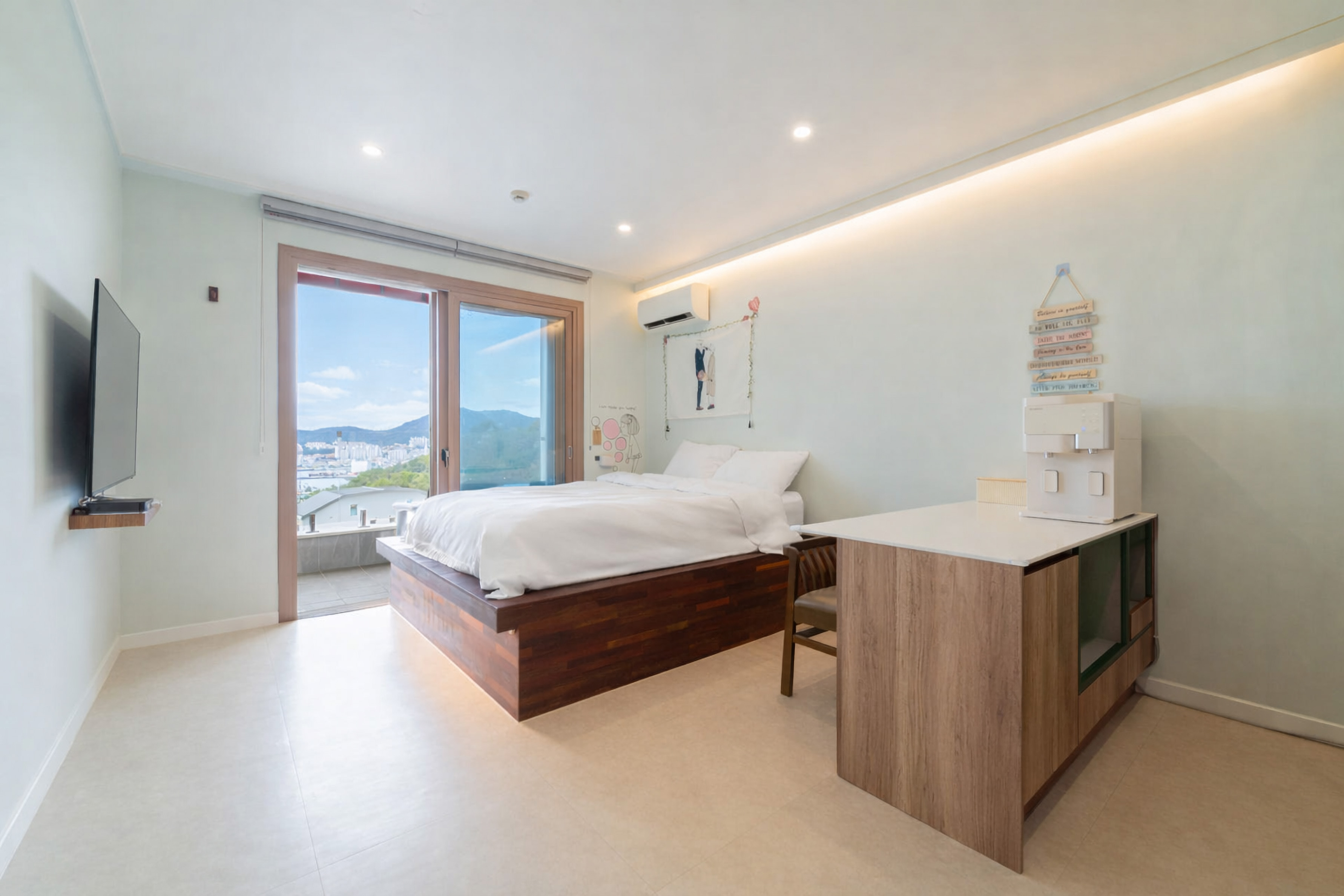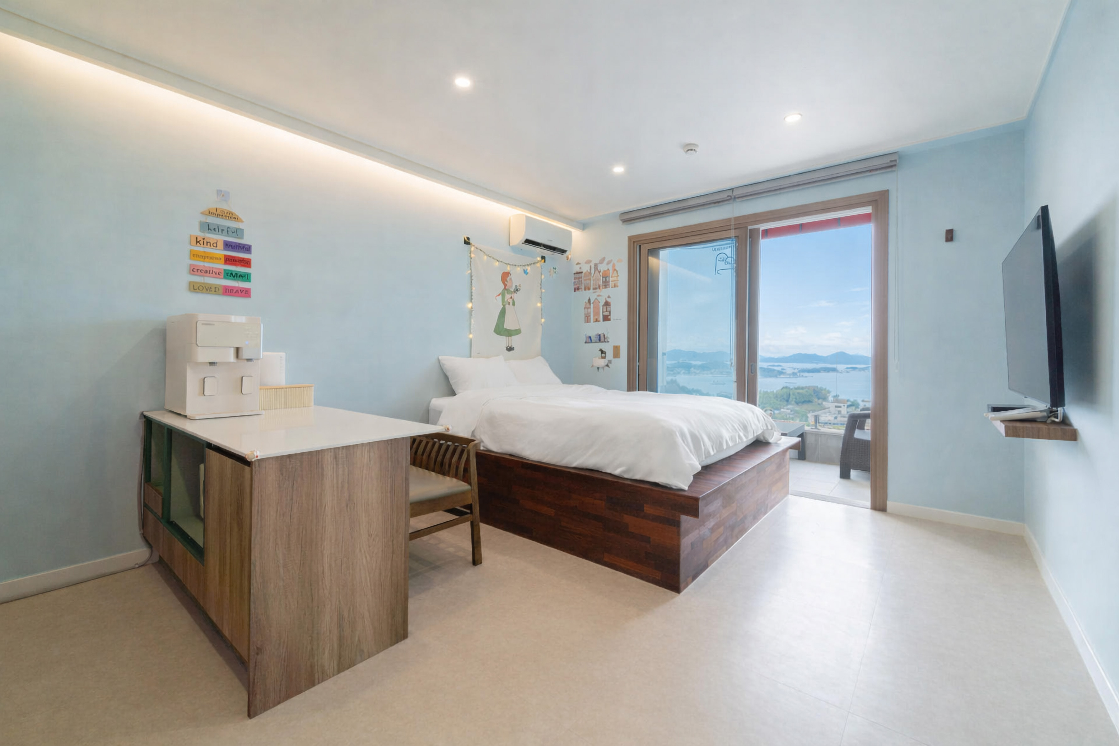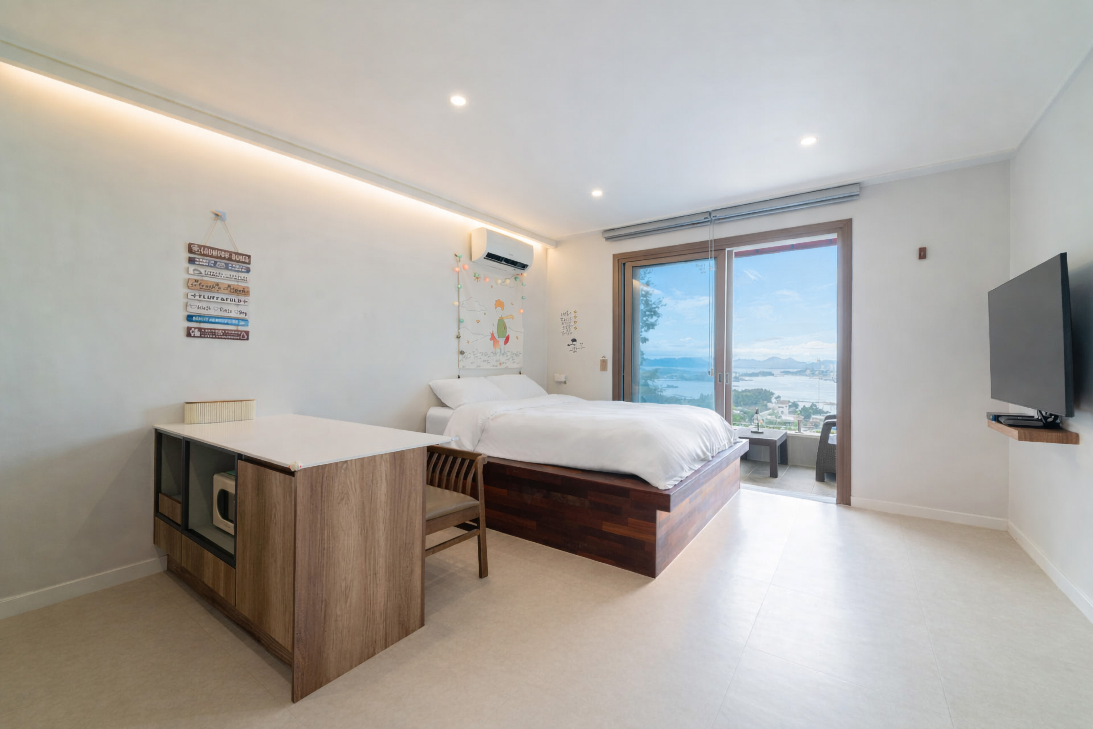 여수의 푸른 바다를 마주한 ‘스테이 해화’는 개별 수영장이 마련된 프라이빗 펜션입니다.