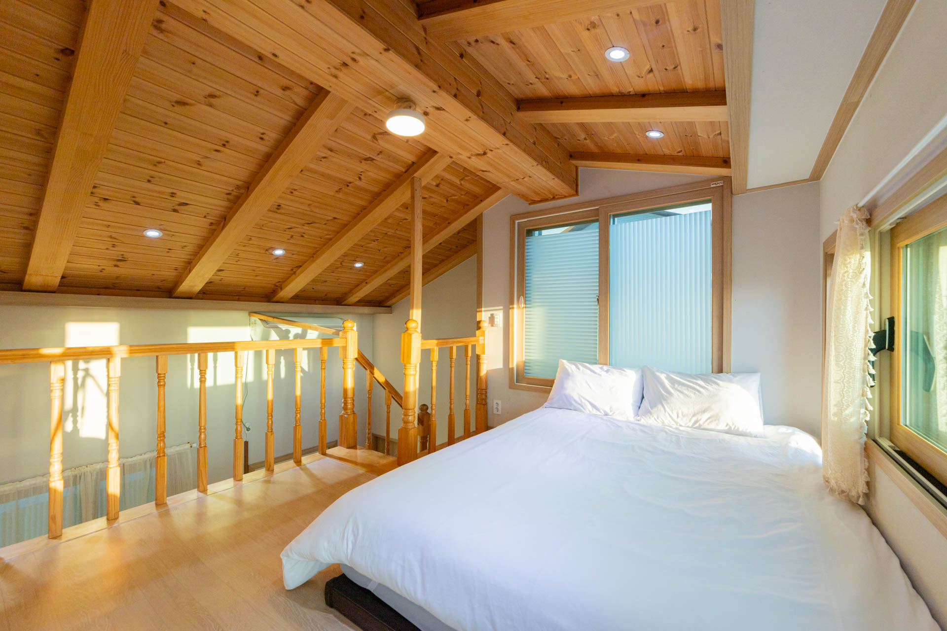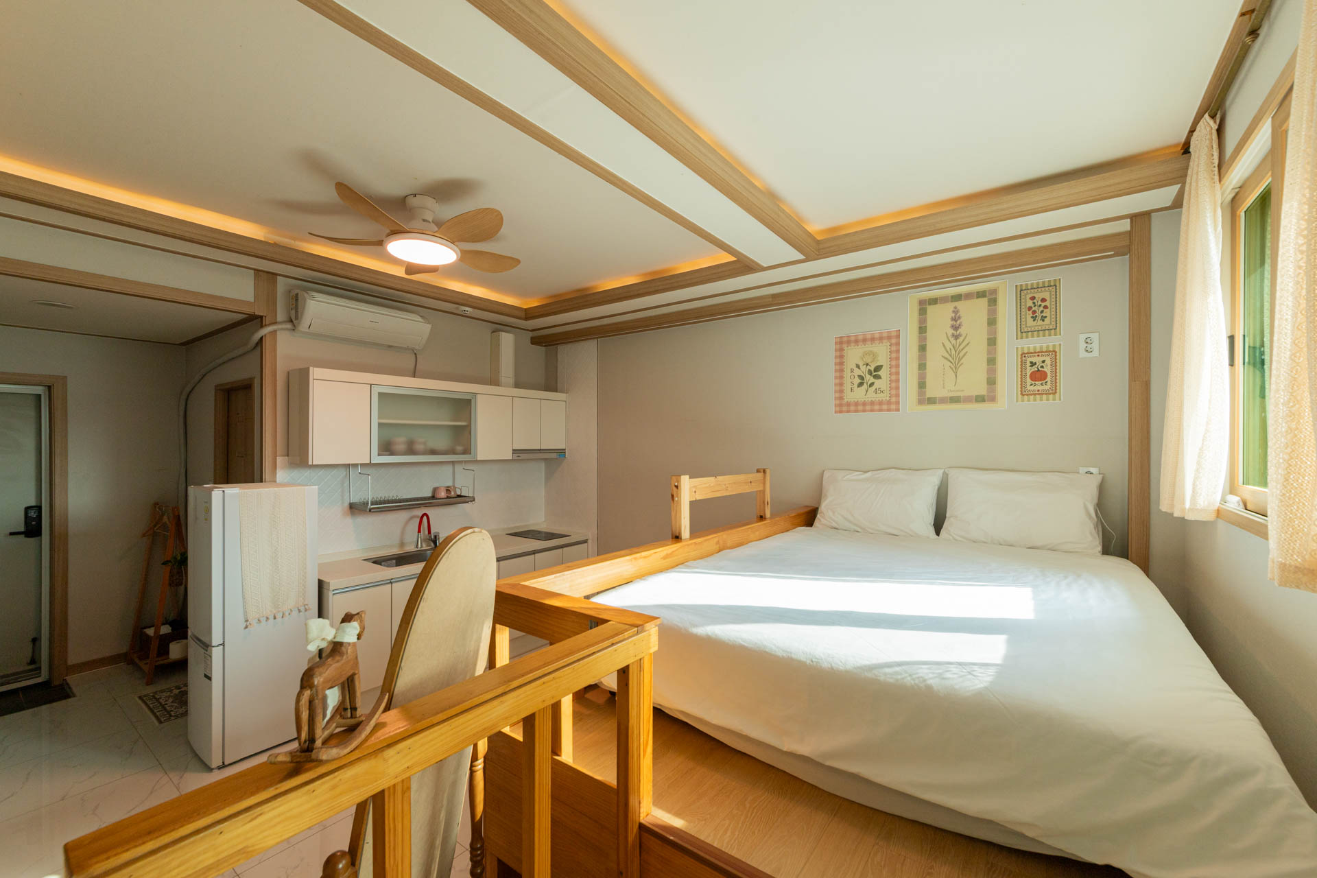 따뜻한 조명과 원목 인테리어, 탁 트인 오션뷰 창으로 붉게 물드는 노을까지 감상할 수 있는 감성 숙소입니다.