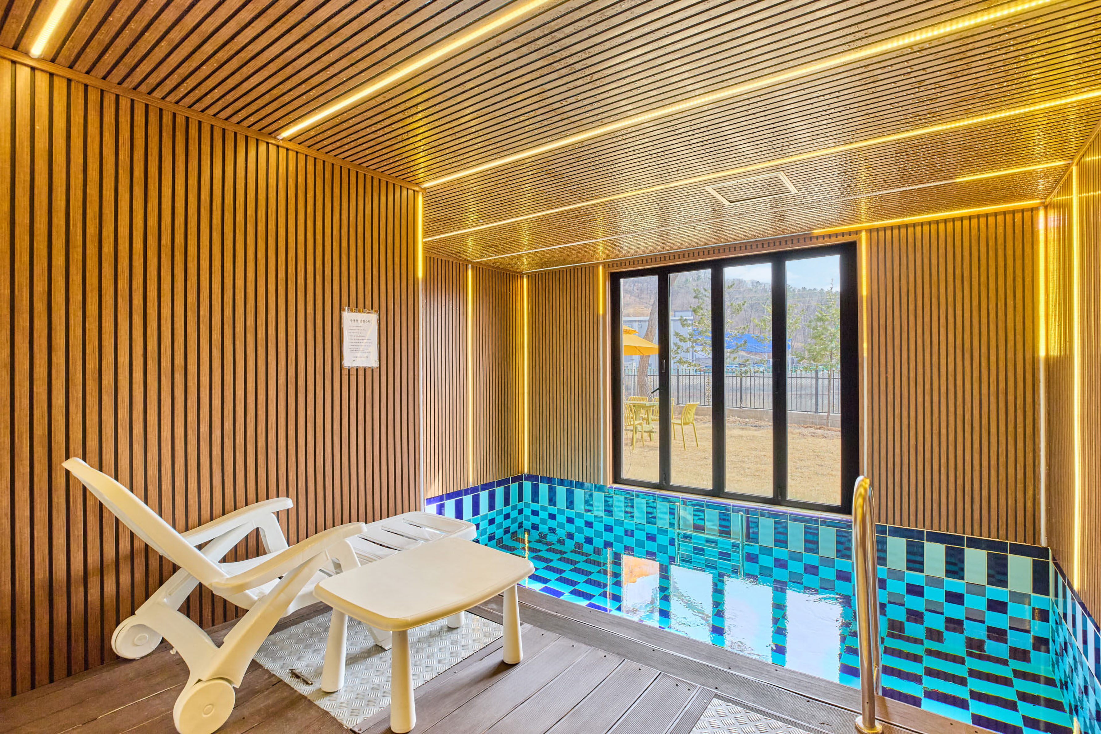 맑고 깨끗한 물 속에서 계절에 구애받지 않고 즐길 수 있는 파주 테라 풀빌라의 실내수영장. 자연 채광이 스며드는 공간에서 아이들과 물놀이를 즐기고, 연인과 함께 물 위에 몸을 맡기며 피로를 풀어보세요. 창밖으로 보이는 푸른 잔디와 나무들이 수영을 더욱 특별한 휴식으로 만들어 드립니다. 편안한 물결 속에서 새로운 힐링을 경험해보세요.