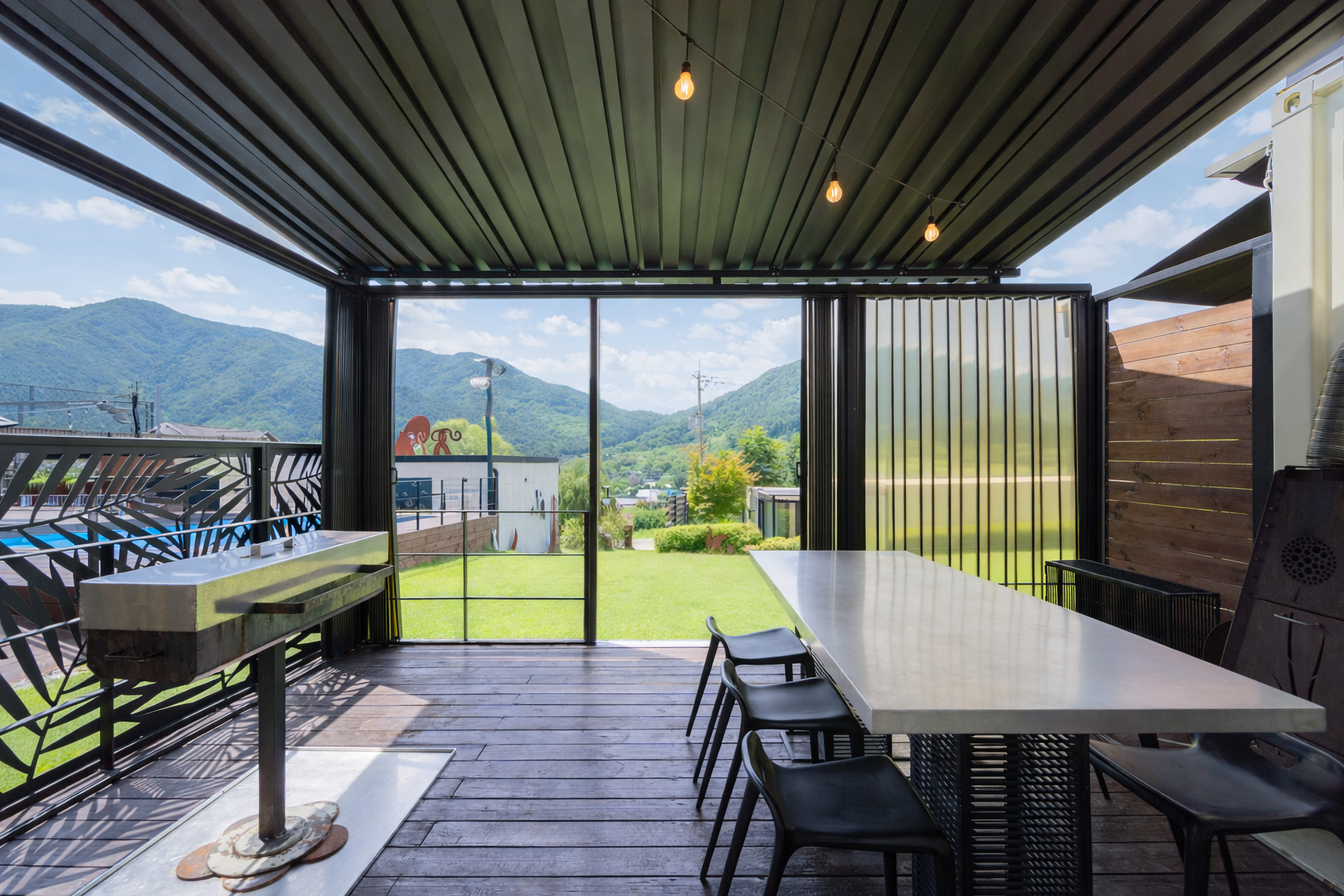 가평 녹수계곡의 자연 속에 자리한 더 스틸은 수출입 컨테이너를 활용한 이색적 외관과 고급 자작나무 인테리어로 꾸며진 감성 숙소입니다. 숲속 상쾌함과 청결함을 최우선으로 하며, BBQ, 수영장 등 다양한 즐길 거리로 가득합니다. 계곡과 아침고요수목원까지 가까워 가족, 친구들과 특별한 추억을 쌓기에 완벽한 공간입니다.