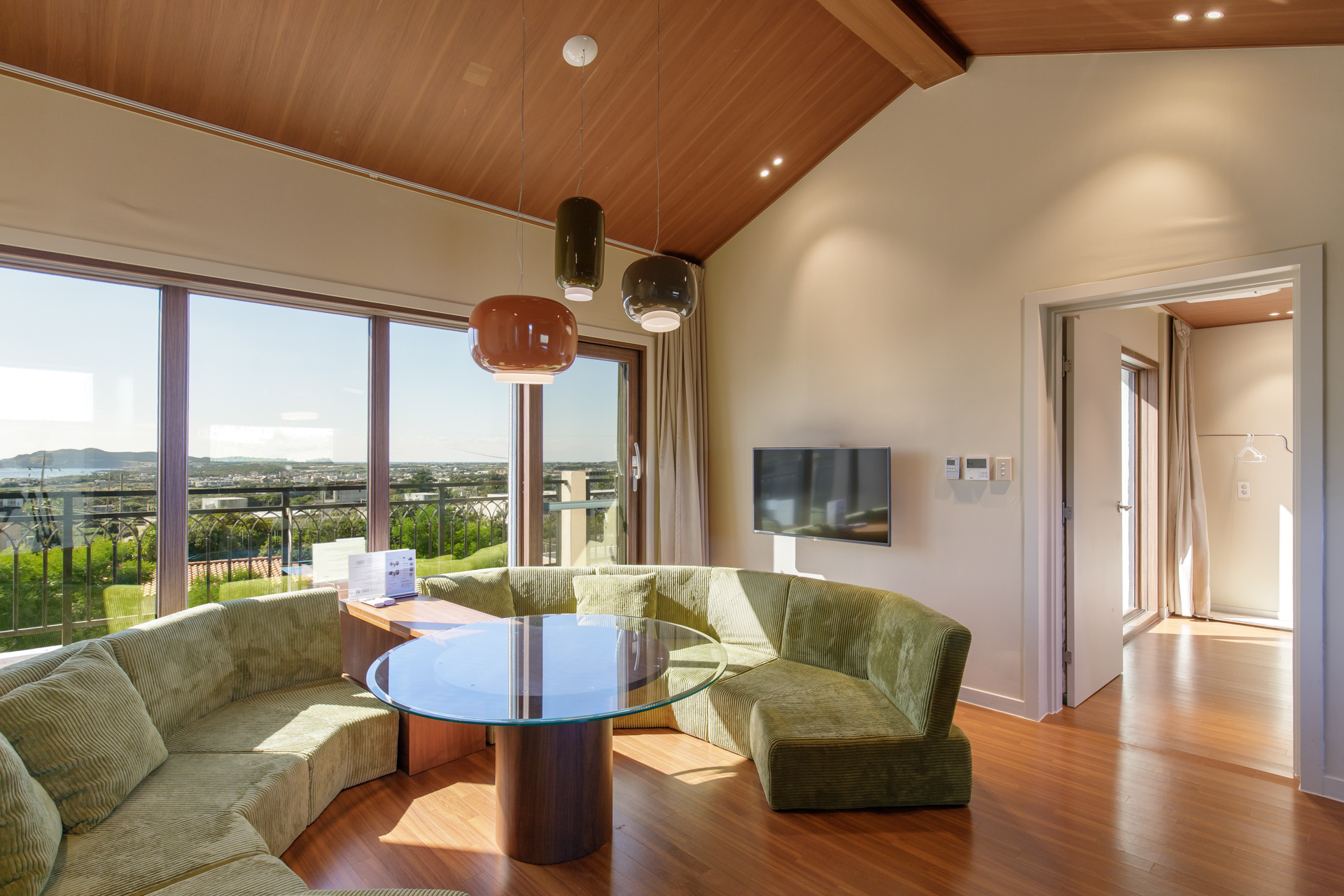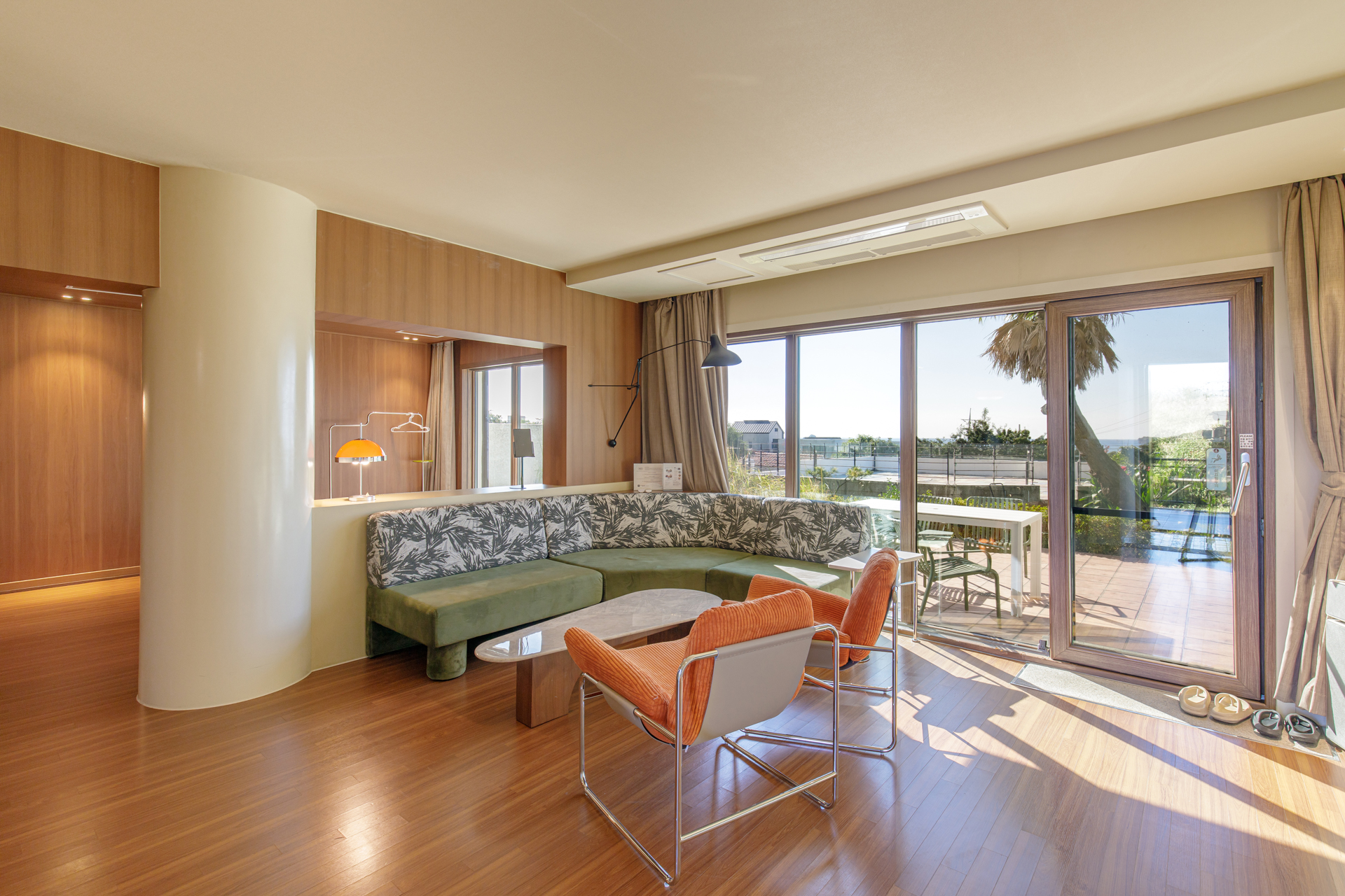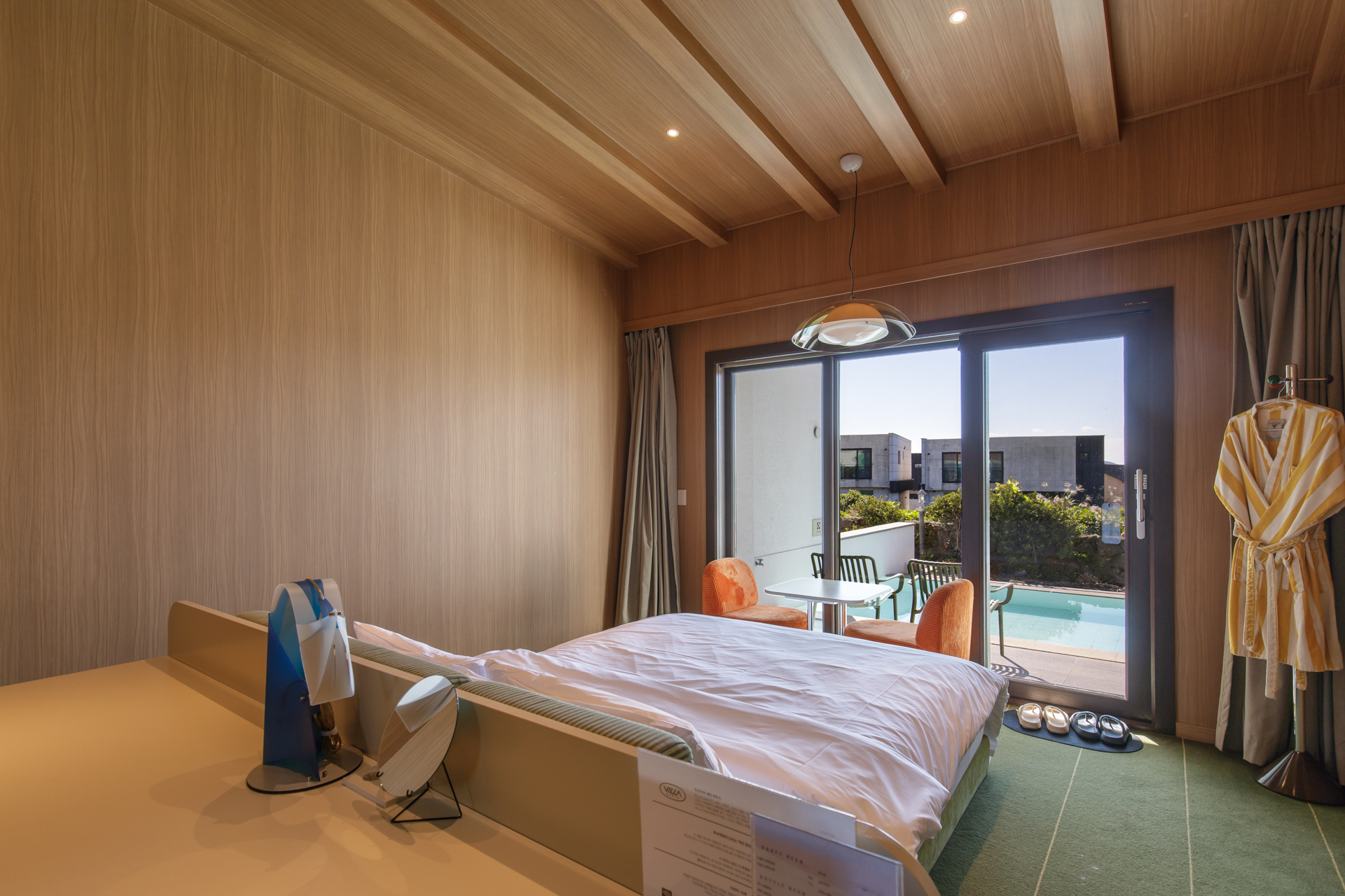 12개의 객실 중 8개는 전용 풀이 마련되어 있으며, 산방산과 송악산, 마라도가 어우러진 전망이 펼쳐집니다.